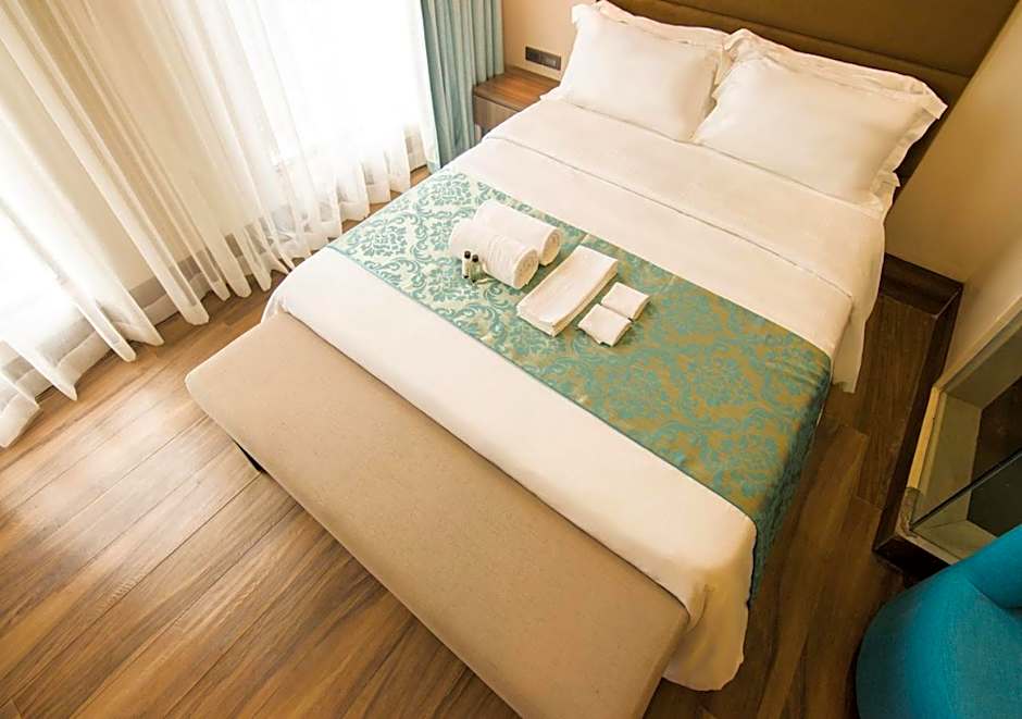 Room options span Standard, Deluxe, Studio, and Suite categories, with a variety of bed configurations. For example, Standard Rooms can feature two Twin beds plus a Double, Deluxe rooms offer two Queen beds, Studios typically include a Double bed, and Suites can come with two Queen beds for larger stays.